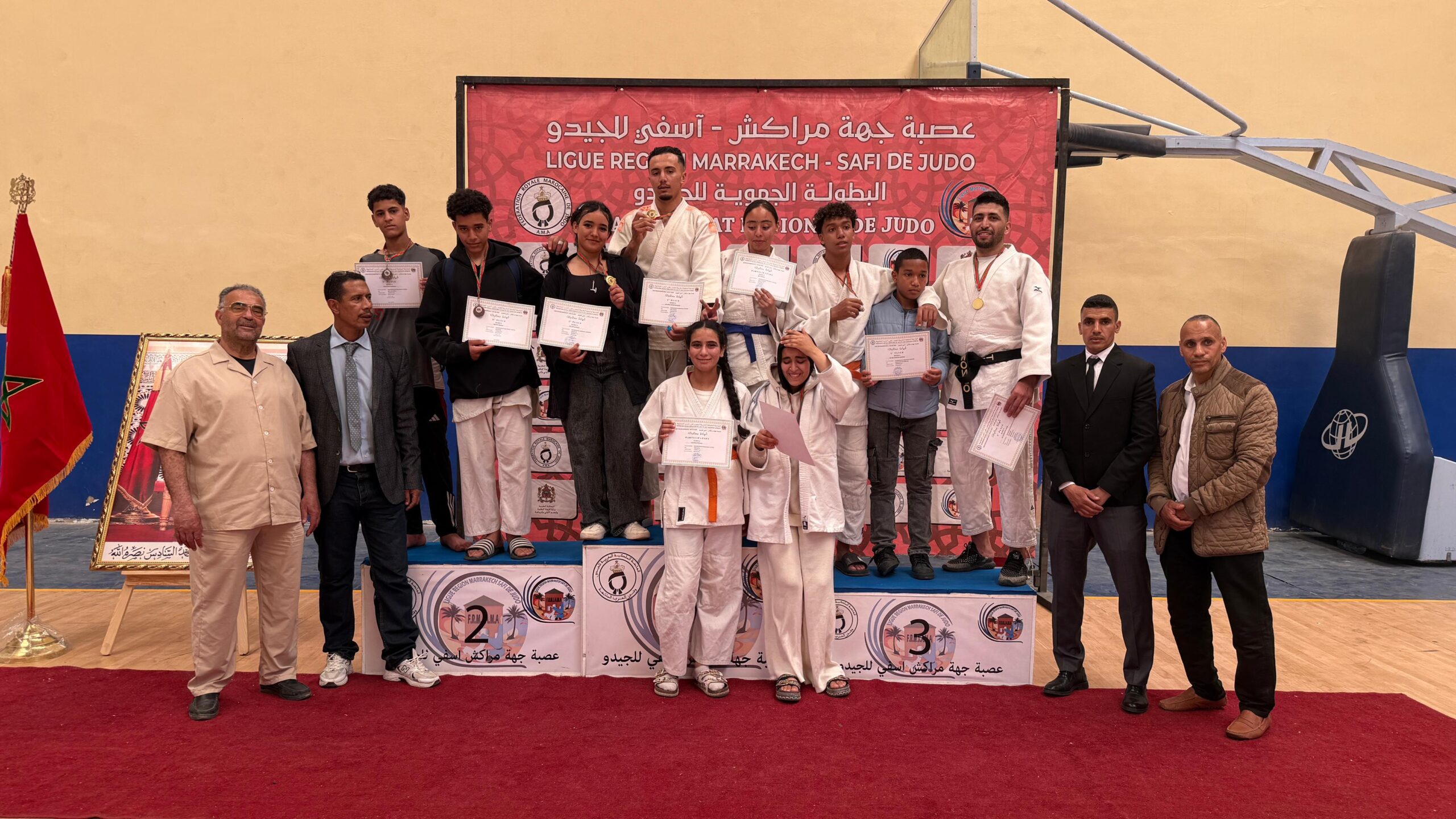 بصم أبطال نادي الكوكب الرياضي المراكشي للجيدو على ملحمة رياضية بامتياز، بعد تحقيقهم لتأهل مستحق وكاسح إلى نهائيات البطولة الوطنية للموسم الرياضي الجاري. جاء هذا الإنجاز عقب تموقعهم ضمن مقدمة الترتيب العام في البطولة الجهوية التي احتضنت أطوارها القاعة المغطاة المحاميد بمراكش، يوم الأحد 26 أبريل 2026 ، بتنظيم من عصبة جهة مراكش-آسفي وتحت إشراف الجامعة الملكية المغربية للجيدو.