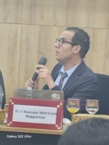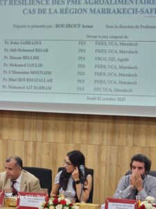 تمت مناقشة البحث، الذي أعد باللغة الفرنسية، أمام لجنة مكونة من سبعة أساتذة أجلاء، تيمناً بـ ” أولياء مراكش السبعة “ (سبعة رجال) ، الذين أداروا عملية القراءة النقدية للبحث و تقييمه . ضمت اللجنة كلاً من :