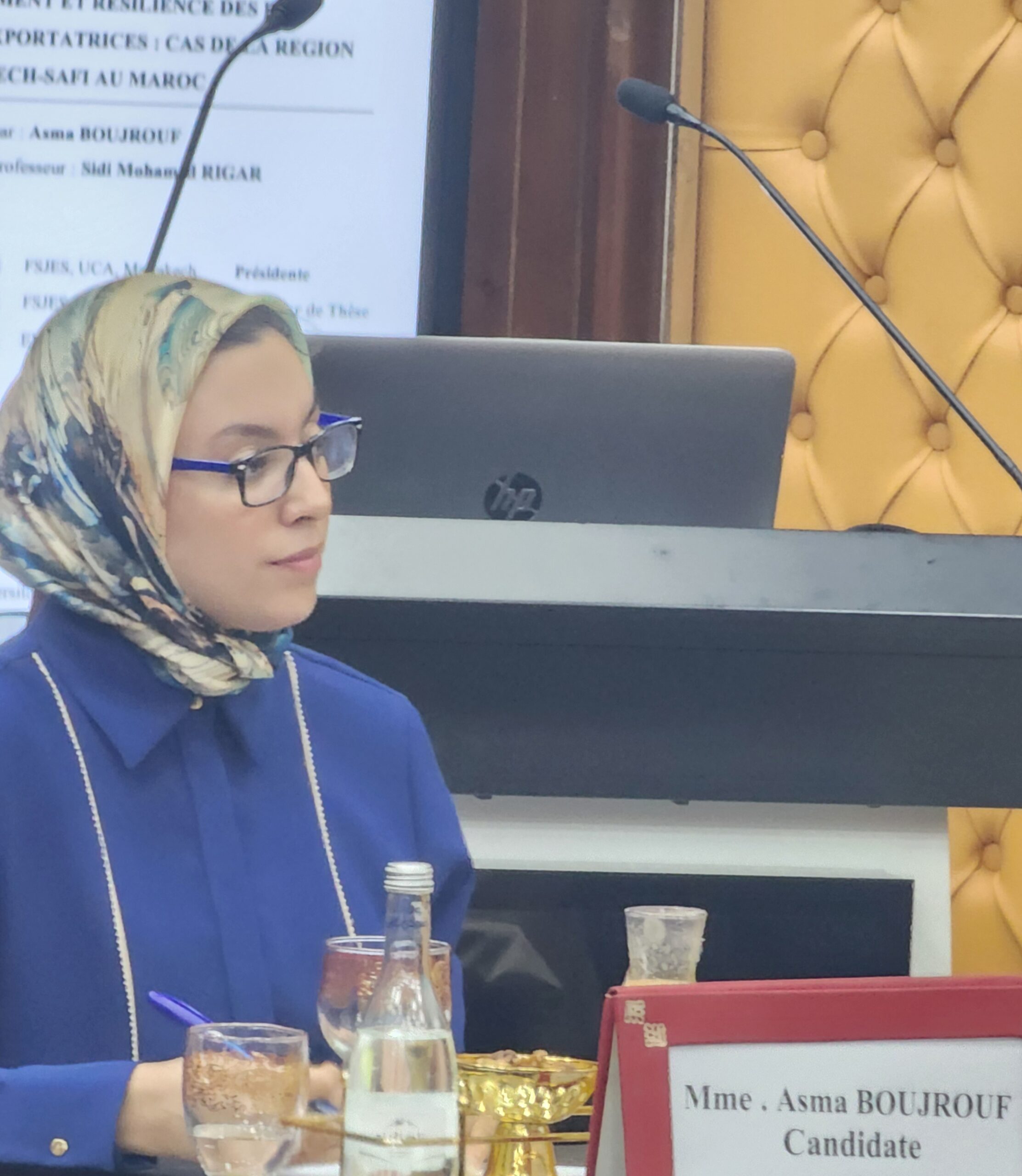 استأثر البحث الذي دأبت “بوجروف” على الغوص في تفاصيله لمدة خمس سنوات باهتمام كبير من اللجنة العلمية المتخصصة . حملت الأطروحة عنوان : ” إدارة مخاطر سلسلة التوريد و مرونة الشركات الصغيرة و المتوسطة المصدّرة للأغذية الزراعية ، جهة مراكش أسفي نموذجاً “. وقد لامست الدكتورة أسماء بوجروف في بحثها دقائق وتفاصيل موضوعية من زوايا جريئة ، اعتبرها الدكاترة المشرفون توفيقاً كبيراً في تناول قضية حيوية .